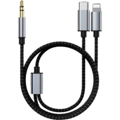Кабель мультимедийный 3.5mm M to USB-C + Lightning 1.15m XoKo (XK-MH-232) Тип коннектора 1 - 1 x 3.5 mm (mini-jack), Тип коннектора 2 - USB type C, Lighting, длина - 1.15 м