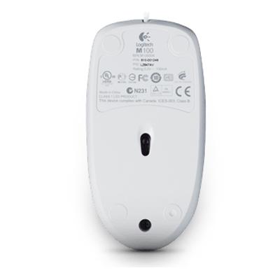 Мышка Logitech B100 White (910-003360) Классические, для компьютера, проводное, USB, оптический, 1000 dpi, количество кнопок - 3, средняя, 113 x 62 x 37 мм, 120 г