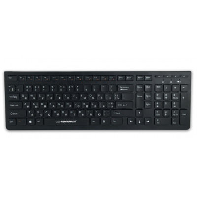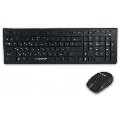 Комплект Esperanza Tacoma Wireless Black (EK136UA) Тип - беспроводной, интерфейс подключения - USB адаптер 2.4 ГГц, формат клавиатуры - полноразмерная, тип сенсора мыши - оптический, разрешение (max) - 1600 dpi, Цвет - черный