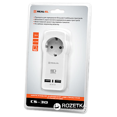| | Зарядное устройство REAL-EL 2*USB 15W (CS-30) Тип - адаптер, Питание - сеть, Назначение - универсальное, тип выходного подключения - USB, розетка, Max - 2.4 А, 15 Вт, количество USB портов - 2 x USB, белый | |   | |