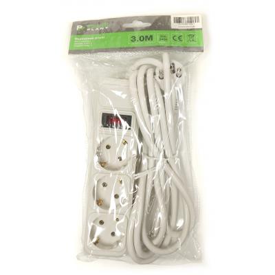Сетевой фильтр питания PowerPlant 3 м, 3 розетки, евростандарт (JY-1054/3) (PPSA10M30S3) Количество розеток - 3, Длина кабеля - 3 м, контакт заземления, с общим выключателем, OEM, Цвет - белый