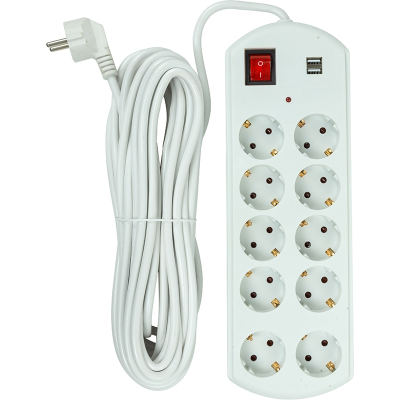 Сетевой фильтр питания PowerPlant 10м, 10 розеток, USB, євро, 100% мідь (YS-N6065/10) (EX610563) Количество розеток - 10, 2 x USB (type A), Длина кабеля - 10 м, контакт заземления, с общим выключателем, с USB, Цвет - белый