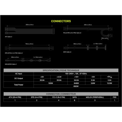Покорите поле битвы Серия MAG стоит рядом с геймерами в погоне за победами. Благодаря добавлению элементов военного дизайна в эти игровые продукты они стали символом прочности и долговечности. Сертификат 80 Plus Gold Энергоэффективность вашего блока питания может напрямую не влиять на производительность вашей системы, но существенно влияет на потребление энергии и тепловыделение. Сертификация 80 Plus Gold гарантирует снижение энергопотребления и более низкие рабочие температуры благодаря более высокой энергоэффективности. Компактные размеры Благодаря меньшим размерам, чем типичные блоки питания на рынке, этот блок питания облегчает организацию кабелей в корпусе компьютера. Только то, что необходимо Полностью модульная конструкция блока питания означает, что можно использовать только разъемы и кабели, необходимые для сборки, что значительно уменьшает беспорядок с кабелями и упрощает сборку системы в целом. Эстетика и удобство Все кабели, поставляемые с этим блоком питания плоские и черного цвета. Благодаря плоским кабелям вся система будет выглядеть более аккуратно и меньше препятствовать потоку воздуха. Используйте только необходимые кабели, а остальные храните в сумке для кабелей, которая также входит в комплект. Гидродинамический подшипник Вентилятор этого блока питания имеет гидродинамический подшипник, чтобы увеличить срок службы вентилятора, сохраняя низкий уровень шума. Преобразование DC в DC и выпрямление на основе диодного моста Топология преобразования постоянного тока в постоянный сочетаются с полным мостовым выпрямлением для достижения более высокой энергоэффективности, стабильного выходного напряжения и быстрого регулирования напряжения для различных сценариев использования. Таким образом, обеспечивается стабильность работы блока питания. Одна линия питания 12 В Блок питания с одной линией 12В может должным образом обеспечить нужную мощность для всех компонентов системы. Этот блок питания имеет 5 разъемов для питания ЦП и видеокарт. Формы защиты Чтобы гарантировать, что вся система может работать безопасно и стабильно в любое время, источник питания поставляется с рядом защитных механизмов.