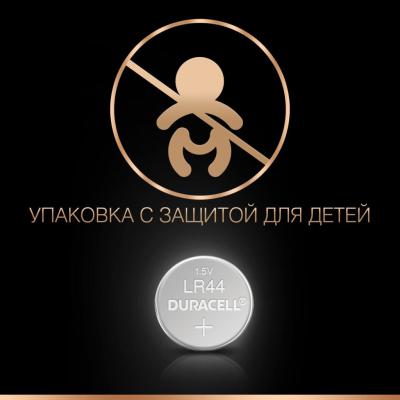 Батарейка Duracell LR44 1.5V спеціалізована лужна типу таблетка, 76A/A76/V13GA, 2шт. в упаковці (5000394504424 / 5007795) Типоразмер - AG13 (LR44), электрохимическая система - щёлочная, Количество в упаковке - 2 шт