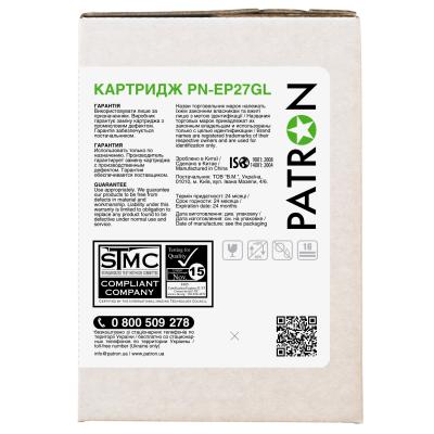 Особливості лазерних картриджів PATRON GREEN Label: Для виготовлення даної продукції використовуються якісні, перевірені комплектуючі, що вигідно відрізняє PATRON GREEN Label від аналогічної продукції інших торгових марок. Готові картриджі перед продажем проходять більш високий ступінь контролю, серед картриджів своєї категорії, що є гарантією надійності. Якість друку і ресурс тестуються за міжнародним стандартом STMC.