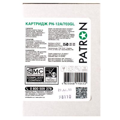 Картридж Patron HP LJ Q2612A/CANON 703 GREEN Label (PN-12A/703GL) лазерный, неоригинальный, Black, Совместимость - Hewlett Packard, 2000 стр