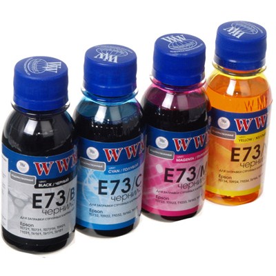 Чернила WWM EPSON CX3700/TX119/TX419/TX209 B/C/M/Y SET (E73SET-2) Тип - совместимый, тип чернил - водорастворимые, совместимость с устройствами бренда - Epson, Цвет - набор (set), емкость - 4 х 100 мл