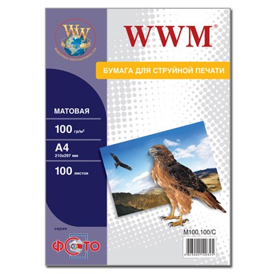 WWM A4 (M100.100) - матовая односторонняя фотобумага средней плотности для печати на принтерах, использующих водорастворимые и пигментные чернила.