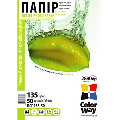 Фотобумага ColorWay A4 135г SuperGlossy, 50c. (PGS1358050A4) |