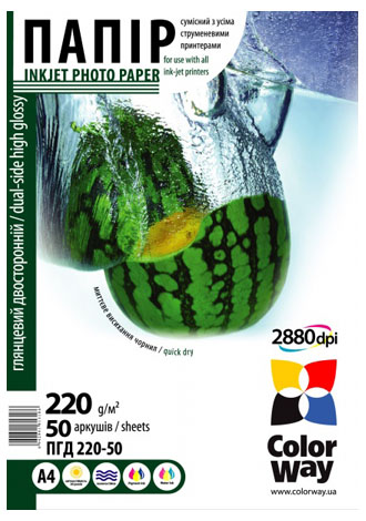 Купить ColorWay A4 (ПГД220-50) - значит приобрести высококачественную глянцевую фотобумагу для печати фотографий полупрофессионального и профессионального уровня. Отпечатки обладают повышенной светостойкостью. |