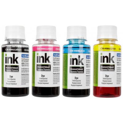 Чернила ColorWay HP 650/652/123 SET BK/С/M/Y 4х100мл (CW-HW652SET01) Тип - совместимый, тип чернил - водорастворимые, совместимость с устройствами бренда - Hewlett Packard, Цвет - набор (set), емкость - 4 х 100 мл