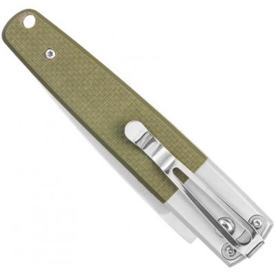 Рукоятка также частично сделана из стали. Второй используемый для ее материал — современный полимер G10. Это очень прочное и долговечное композитное волокно. Поверхность рукоятки — текстурированная, что улучшает ее сцепление с ладонью. На внутренней стороне расположена металлическая клипса для присоединения к поясному ремню или фиксации в кармане. Эта небольшая деталь позволяет держать нож под рукою и не потерять его.