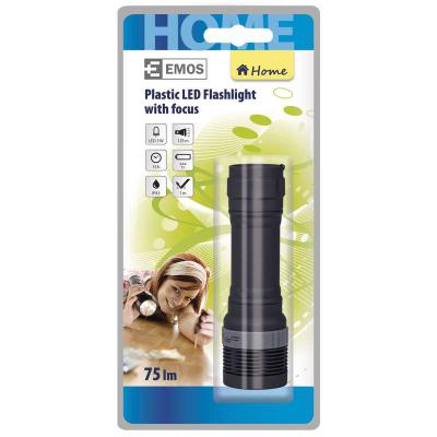 EMOS E-1512 (P4702) - LED фонарь Это ручной универсальный фонарик, источник света для индивидуального использования, который послужит Вам в дороге, во время кемпинга, в походах и просто для прогулки в темное время суток. При его компактном размере, длинна 120 мм, диаметр 35 мм и легкий вес – всего 85 грамм, не занимает много места в машине, а с помощью ремешка его удобно носить на руке. Корпус изготовлен из качественного пластика ABS, с резиноподобным матовым покрытием, черного цвета, с серым кольцом. Уровень защиты IP43, это защита от проникновения твердых объектов размером более 1 мм и от попадания капель и струй падающих сверху. Особенностью такого фонарика является фокусировка света, которая осуществляется пошагово с помощью регулируемой трещётки. Дальность рассеянного луча 45 метров, а максимально сфокусированного 125 метров. Источник света диоды и LED технология, которые дают белый яркий свет. Один светодиод мощностью 3 Вт, с гладким металлическим отражателем, увеличивает яркость луча. Максимальное время работы, без смены батарей, такого светодиодного фонарика достигает 15 часов. |