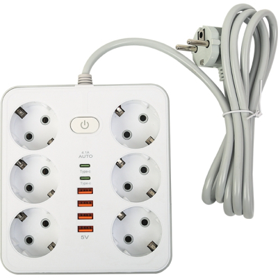 Сетевой фильтр питания XoKo XK-SP-6-4-2-WH Количество розеток - 6, 2 x USB (type C), 4 x USB (type A), Длина кабеля - 2 м, контакт заземления, с общим выключателем, с USB, быстрая зарядка USB, Суммарная мощность подключенной нагрузки - <= 3000 Вт, RTL, Цвет - белый