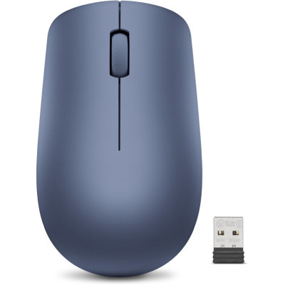 Мышка Lenovo 530 Wireless Abyss Blue (GY50Z18986) Классические, для ноутбука, беспроводное, USB адаптер 2.4 ГГц, оптический, 1200 dpi, количество кнопок - 3, 1 х AA, средняя, 106 х 63 х 37 мм, 65 г